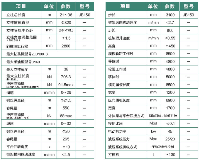 JB150系列全液壓步履式打樁架是無錫市山嶺工程機械有限公司自主研發(fā)的機、電、液一體化步履式打樁架,技術水平達到國內領先水平。該機配置精良、性能優(yōu)越、工作穩(wěn)定可靠、實用性廣、安全文明、低碳節(jié)能、符合環(huán)保要求,適應各種樁基施工需求,尤其能滿足深基礎施工中廣泛采用的地下連續(xù)墻施工工藝(即SMW工法),是高架道路、高速公路、橋梁、港口、碼頭、地鐵車站和高層建筑中樁基礎施工的多功能、高穩(wěn)定性施工設備。